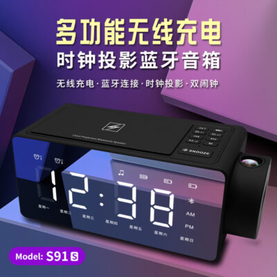 Loa Bluetooth xuyên biên giới S91S thẻ loa âm thanh sạc không dây nhà mới trình chiếu đồng hồ loa thông minh