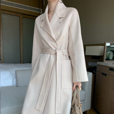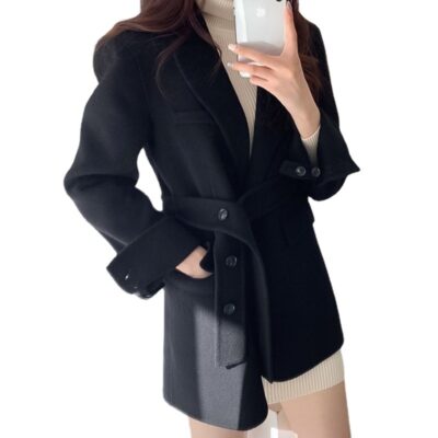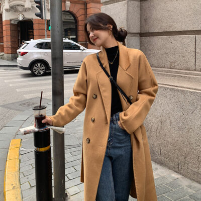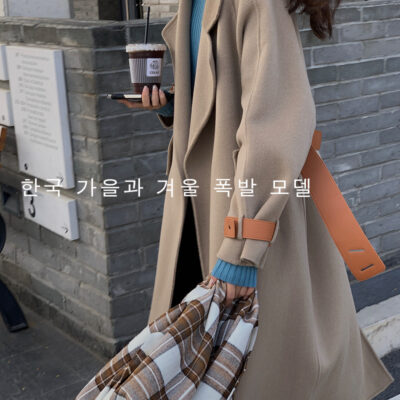 Thắt lưng tóc dài cao cấp phiên bản Hàn Quốc khí chất mới thanh lịch áo khoác len hai mặt dài trung bình cho nữ áo khoác nữ cao cấp