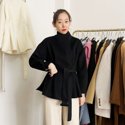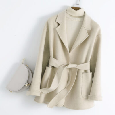 2022 Thu Đông Phối Dây Ngắn Rời Phối Len Phổ Biến 2 Mặt Cashmere Áo Khoác Ngắn