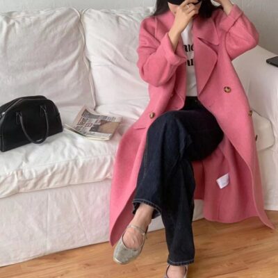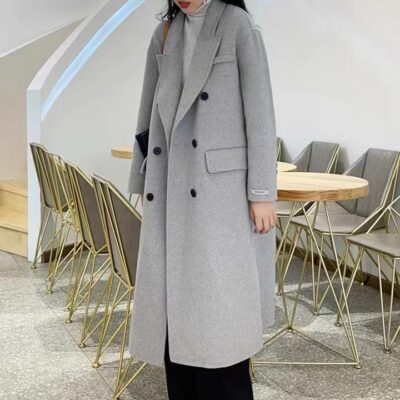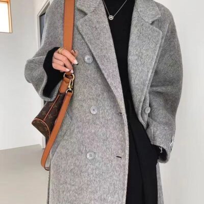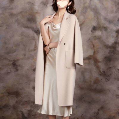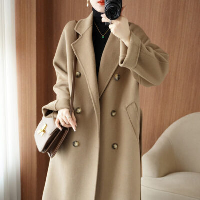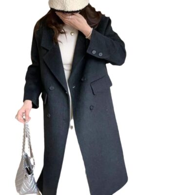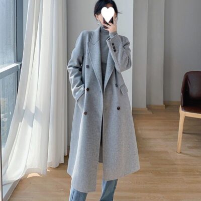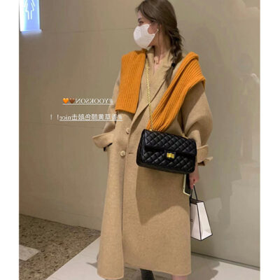 Áo khoác len cashmere hai mặt dành cho nữ mùa thu đông khí chất mới Áo khoác len dáng dài vừa vặn cho nam nhỏ phù hợp với mọi lứa tuổi