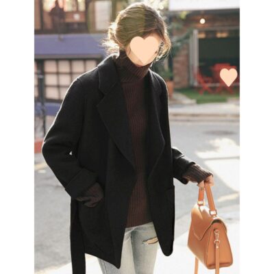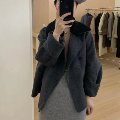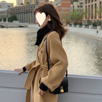 Áo khoác cashmere hai mặt phong cách Hàn Quốc cho nữ ngắn phù hợp với áo khoác len caramel rộng rãi