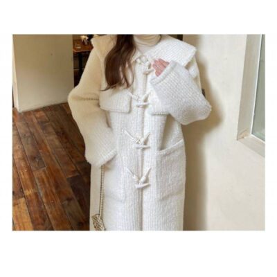 [Spot] Mùa đông 2023 mới của Hàn Quốc Dongdaemun khí chất ve áo len áo khoác len dài vừa phải