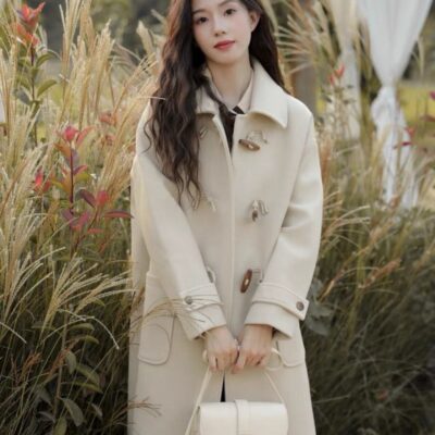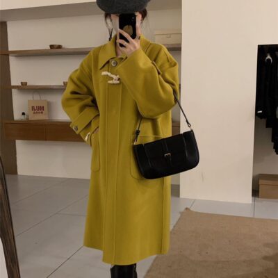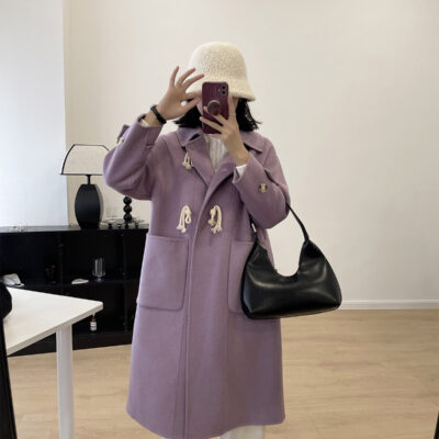 Khóa Sừng Áo Khoác Len 2023 Nhỏ 2 Mặt Áo Khoác Cashmere Cao Cấp Trung Dài Áo Khoác Len Nữ Mùa Đông