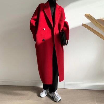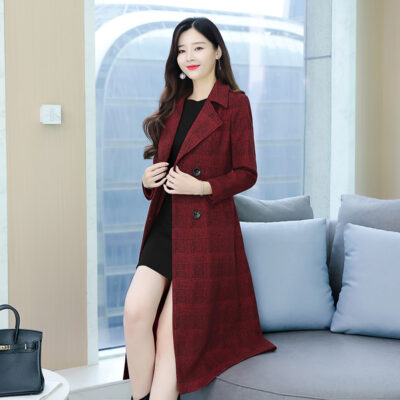 Nữ Mới Size Lớn Chiều Dài Trung Bình Áo Khoác Len Nữ Màu Đỏ Từ Anh Áo Khoác Len Đỏ Trung Quốc