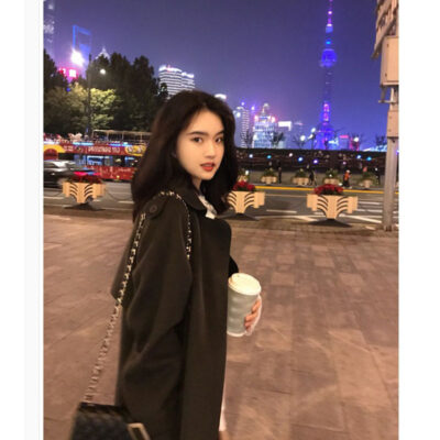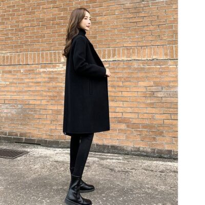 Dongdaemun Hàn Quốc 2023 Thu Đông Thiết Kế Mới Thích Hợp Cổ Áo Đứng Dày 2 Mặt Áo Khoác Len