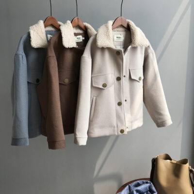 Phiên bản Hàn Quốc dáng rộng nhỏ áo khoác len nữ xuân thu mới cừu len cổ dày áo khoác len ngắn