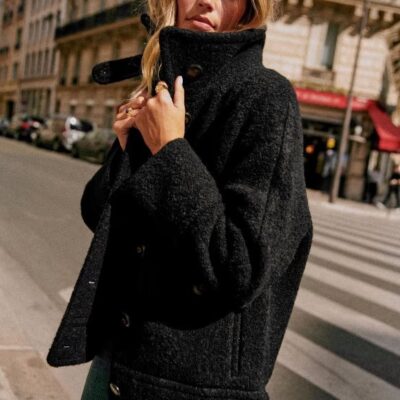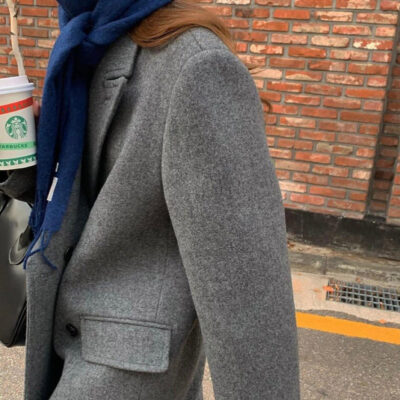 Mùa đông 23 phong cách mới Pháp len pha tính khí ve áo thẳng giản dị phù hợp với áo khoác nữ dài tay áo khoác len