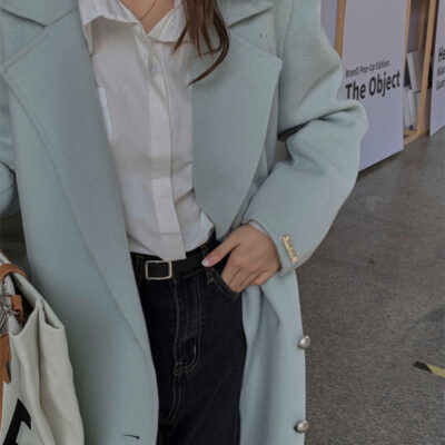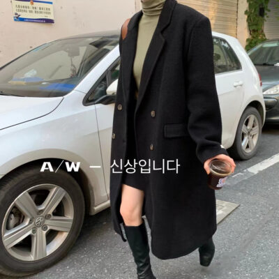 Spot phiên bản Hàn Quốc của Dongdaemun lerob* Áo khoác len hai hàng khuy của Mina Áo khoác dài nữ Hàn Quốc