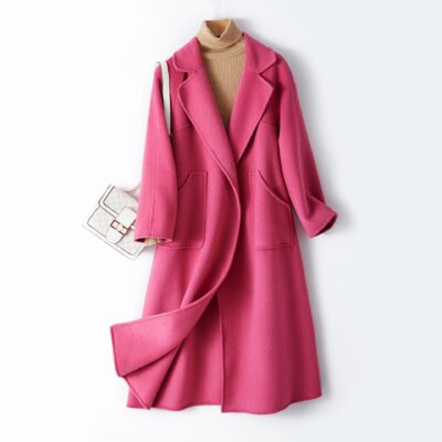 Áo khoác len cashmere nguyên chất 2 mặt cao cấp cho nữ 100% len nguyên chất dài trung bình mùa thu và mùa đông áo khoác len dày