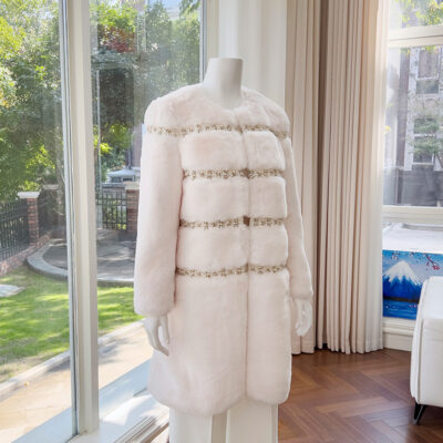 Chống mùa phúc lợi phong cách nước ngoài lông thỏ Angora hai mặt thủ công len thơm áo khoác gió thu đông 23 mới 401596