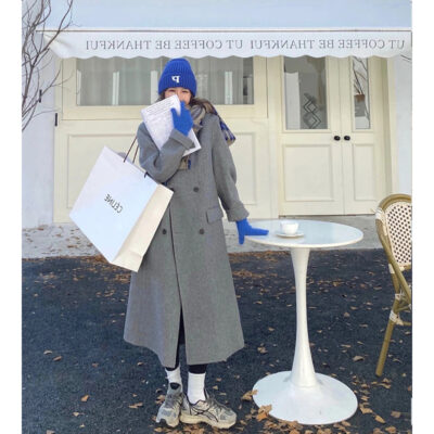 Áo khoác len dáng dài phong cách Hàn Quốc cỡ nhỏ Áo khoác len nữ màu xám dáng dài thu đông 6222