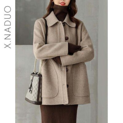 Quần áo thu đông 2023 mới áo khoác len hai mặt nữ cao cấp kéo dài khí chất áo khoác len hai mặt áo khoác nữ