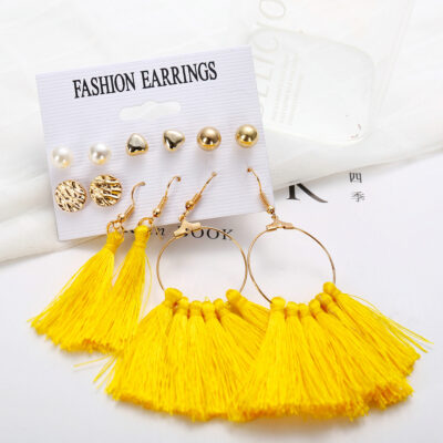 Bông tai xuyên biên giới châu Âu và châu Mỹ mới trang sức xuyên biên giới Bông tai tua rua tam giác mặt trăng Bohemian bộ 6 đôi