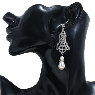 Bông tai xuyên biên giới châu Âu và châu Mỹ thời trang tua dài giọt nước bông tai ngọc trai nữ hợp kim kim cương bông tai hình quạt