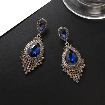 Châu Âu và Châu Mỹ bán chạy phóng đại khí chất bông tai tua rua thủy tinh thời trang kim cương bông tai hợp kim bông tai retro bán buôn