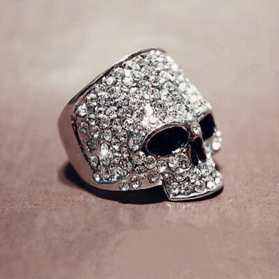 Nhẫn kim cương phong cách punk châu Âu và Mỹ đầu ma đầy đủ kim cương nhẫn kim cương hộp đêm hip-hop punk phóng đại nhẫn