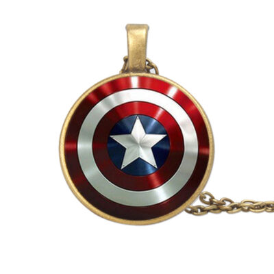 Marvel Anh Hùng Captain America LOGO Thời Gian Đá Quý Mặt Dây Chuyền Đẹp, Mặt Dây Chuyền Nam Vòng Cổ Thủy Tinh Ngoại Thương Bán Chạy Bán Buôn