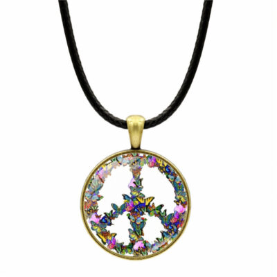 Bướm Dấu Hiệu Hòa Bình Vòng Cổ Nữ Sáng Tạo Dây Da Thời Gian Đá Quý Retro Mặt Dây Chuyền Thời Trang Đa Năng Trang Sức Bán Buôn