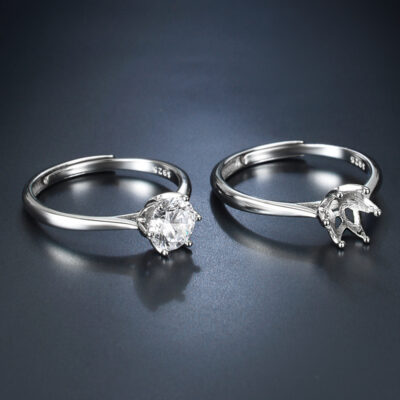 Âu Mỹ Tay Trang Trí Thời Trang Mở Nhẫn Cặp Nhẫn Nữ Zircon Kim Cương 6 Móng Vuốt Vương Miện Nhẫn Cưới Tay Trang Sức Bán Buôn