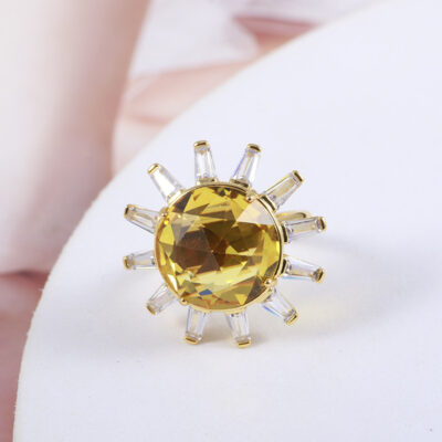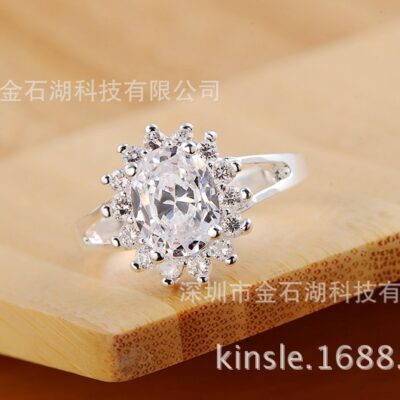 Bán buôn đồ trang sức bạc theo phong cách nóng bỏng của Taobao xu hướng tinh tế Thời trang Hàn Quốc OL khảm kim cương zircon nhẫn mặt trời pha lê zircon