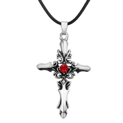 Mặt dây chuyền đá quý bằng thép không gỉ cổ điển của Châu Âu và Mỹ Nhật ký ma cà rồng Thánh Tâm Thánh Giá Vòng cổ Pha lê nam hợp thời trang