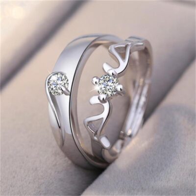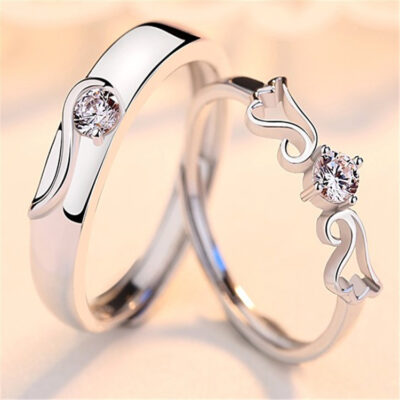 Nhẫn đôi một cặp bạc nữ thiết kế thích hợp nhẫn nam mở nhẫn cưới nhẫn kim cương có thể điều chỉnh quà tặng kỷ niệm