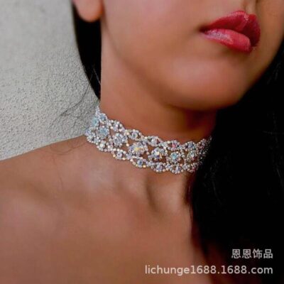 quốc tế phong cách nóng bỏng Âu Mỹ cá tính phù hợp với phong cách hip-hop Vòng cổ pha lê kim cương dát nhung Hàn Quốc Dây đeo cổ kim cương