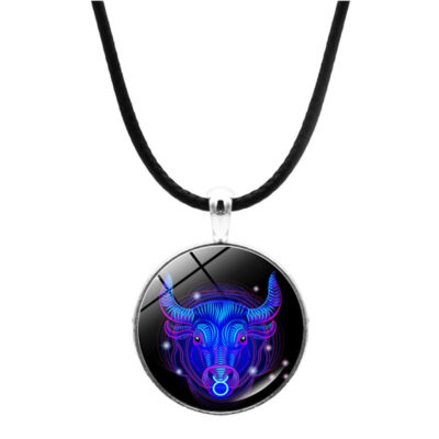 Sản phẩm mới quốc tế mười hai chòm sao thời gian đá quý dây da vòng cổ thời gian đá quý dây da áo len dây chuyền trang sức mặt dây chuyền