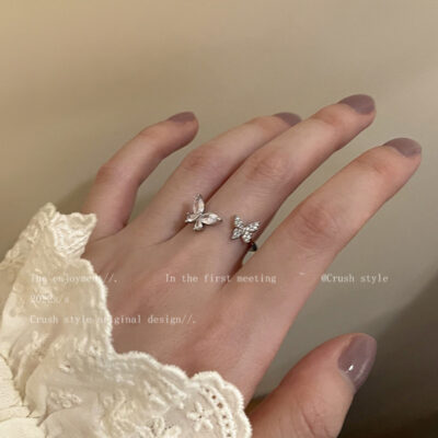 Nhẫn cao cấp khảm bướm kim cương hở nhẫn nữ ins thời trang cá tính ngón trỏ nhẫn nhẹ thiết kế sang trọng thích hợp nhẫn