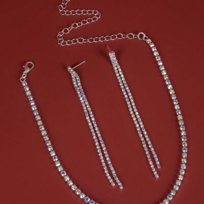 Trung Đông và Châu Âu Cô Dâu Trang Sức Kim Cương Giả Xương Đòn Cổ Bông Tai Tua Rua Nữ Kim Cương Bộ Áo Cưới Phụ Kiện Thẳng