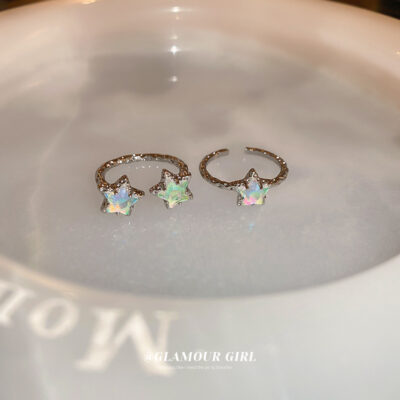 Đá mặt trăng ngôi sao năm cánh khảm kim cương gấp mở nhẫn thiết kế cá tính cảm giác ngón trỏ nhẫn ánh sáng sang trọng ins khí chất trang sức