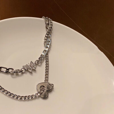 Hai chiếc có thể được đeo riêng ~ vòng cổ xếp chồng lên nhau bằng đá hình con bướm nữ ins gió lạnh ngọt ngào mát mẻ chuỗi xương quai xanh vòng cổ choker