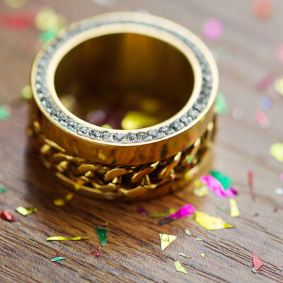 Nguồn hàng của nhà sản xuất Nhẫn inox đính kim cương thời trang Âu Mỹ phong cách nam nữ mặt rộng đính đầy kim cương sang trọng