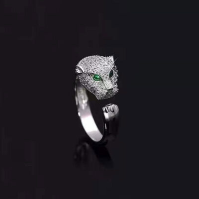 Nhẫn bạc S925 phiên bản Hàn Quốc dành cho nam và nữ cá tính theo phong cách cổ điển Nhẫn mở đầu da báo đính kim cương giả cặp đôi ngón trỏ phóng đại Nhẫn thủy triều