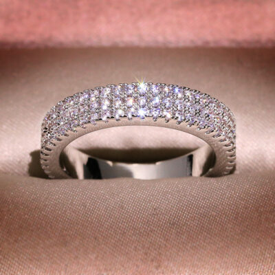 Douyin Sống Mới Bán Chạy Nhất 5 Carat Trứng Bồ Câu III Tình Yêu Giả Moissanite Ba Hàng Full Dây Kim Cương Nhẫn
