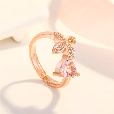 Bán buôn nhẫn hình trái tim bán chạy quốc tế nhẫn sang trọng ins gió mở đào trái tim dát kim cương giả nhẫn bán buôn