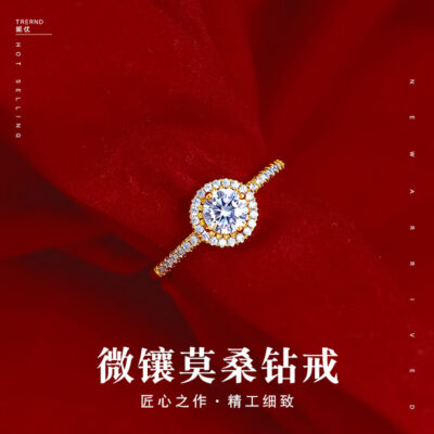 Hazy Moon Đồ trang sức nóng quốc tế châu Âu và châu Mỹ AAA zircon siêu nhỏ dát bạch kim nhẫn đính hôn bán buôn