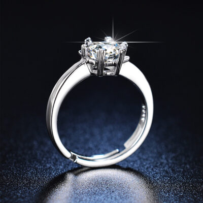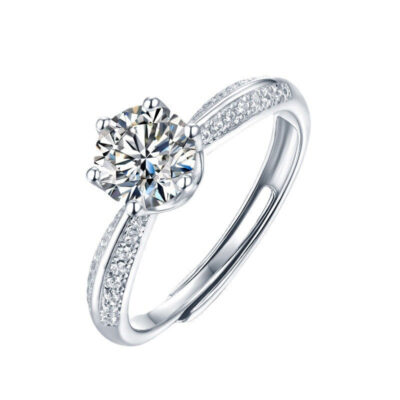 Mới 1 Carat Giả Moissanite Nhẫn Đứng Kim Cương Nữ Mở Vòng Sống Nguồn Đính Kim Cương Hoa Mai Nhẫn Bán Buôn