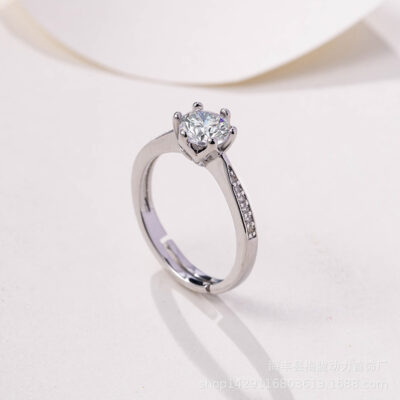 Nhẫn cưới sáu móng tinh tế của Nhật Bản và Hàn Quốc nhẫn mở xu hướng đơn giản Mô phỏng Moissanite nhẫn đôi zircon trang sức bán buôn