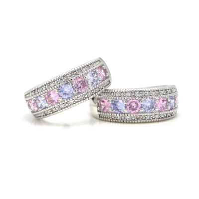 Nhẫn cưới kim cương hồng kiểu Âu Mỹ sang trọng cao cấp khảm vi màu zircon nhẫn chéo gương sáng tạo trang sức cầm tay