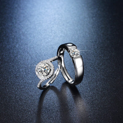 Nhẫn cưới mô phỏng cảnh đám cưới nhẫn cưới cặp đôi nhẫn sống miệng có thể điều chỉnh lời cầu hôn Nhẫn kim cương giả cho bạn gái