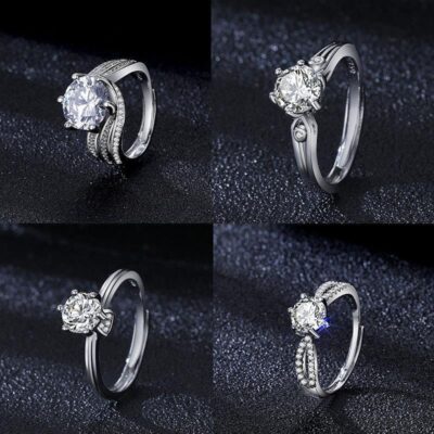 Nhẫn zircon một carat nữ nhẹ nhàng thời trang sang trọng phong cách cầu hôn nhẫn kim cương quà tặng bạn gái tính khí đơn giản mở nhẫn