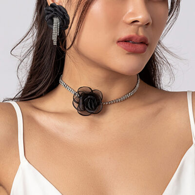 Châu Âu và Mỹ quốc tế trang sức lưới hoa DIY cổ tất cả trận đấu xương đòn dây chuyền retro hoa trà đá vòng cổ nữ