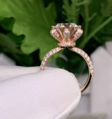 JZ040 Sống Miệng Có Thể Điều Chỉnh Giả Nhẫn Đứng Kim Cương Màu Vàng Hoa Hồng Vàng Cưới Kim Cương Nhẫn Nữ 50 Điểm Đính Hôn Nhẫn Đứng Kim Cương