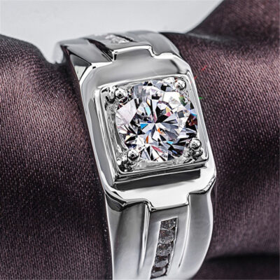 Hợp Thời Trang Nhẫn Nam Nhẫn Đứng Kim Cương Moissanite 4 Móng Vuốt Nhẫn Châu Âu Và Mỹ Độc Đoán Trang Sức Một Dropshipping