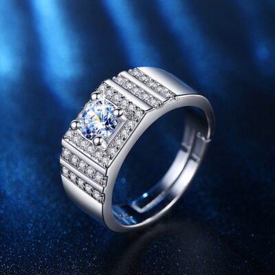 Mở Nhẫn Kim Cương Mạ Bạch Kim Giả Moissanite Flash Nhẫn Cát 1 Carat Nhẫn Nam Công Sở Phun Cát Quý Ông Nhẫn Cưới