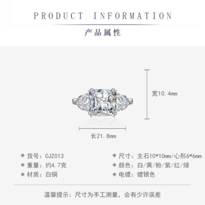 quốc tế Douyin Kuaishou Net Red Live Eight Hearts và Eight Arrows Nhẫn Moissanite giả zircon dành cho nam và nữ Nhẫn cưới sáu móng Bán buôn