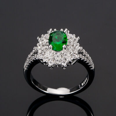 Bán chạy ở Châu Âu và Châu Mỹ Nhẫn kim cương ngọc lục bảo thời trang tính khí xanh đá quý zircon Nhẫn trang sức bán buôn