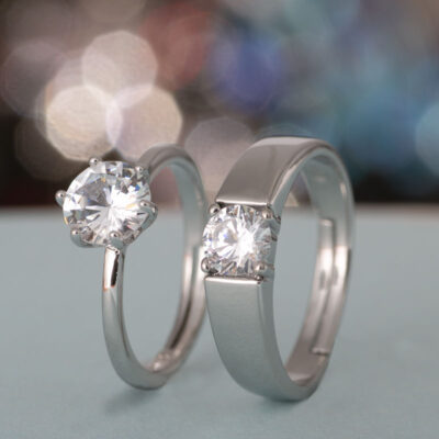 Nhẫn đôi phiên bản Hàn Quốc nhẫn đôi đơn giản mô phỏng nhẫn kim cương mở zircon nhẫn cổ điển nhẫn cưới đôi một thế hệ