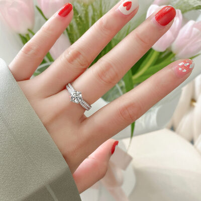 Douyin phát sóng trực tiếp nhẫn sương trắng bán chạy của Nhật Bản và Hàn Quốc cổ điển bốn móng một carat moissanite phân phối nhẫn cầu hôn sang trọng nhẹ
